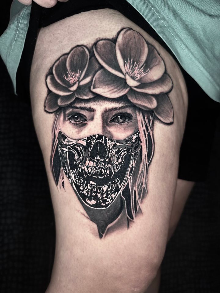 Dallas-based tattoo artist specializing in black & grey. dog mom to two perfect chaos gremlins. my life is just art, cool cars + my pups.